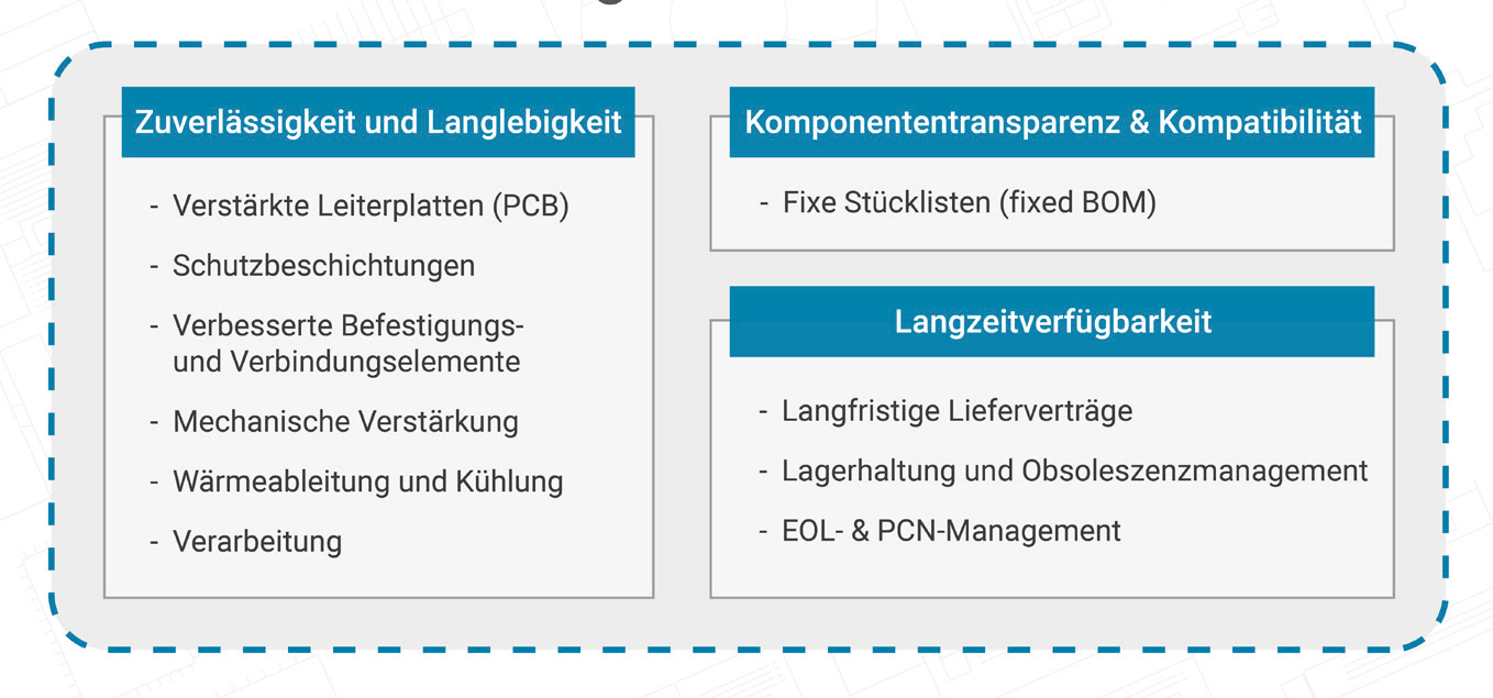 - angepasste Design- und Fertigungsmerkmale - Langzeitverfügbarkeit durch