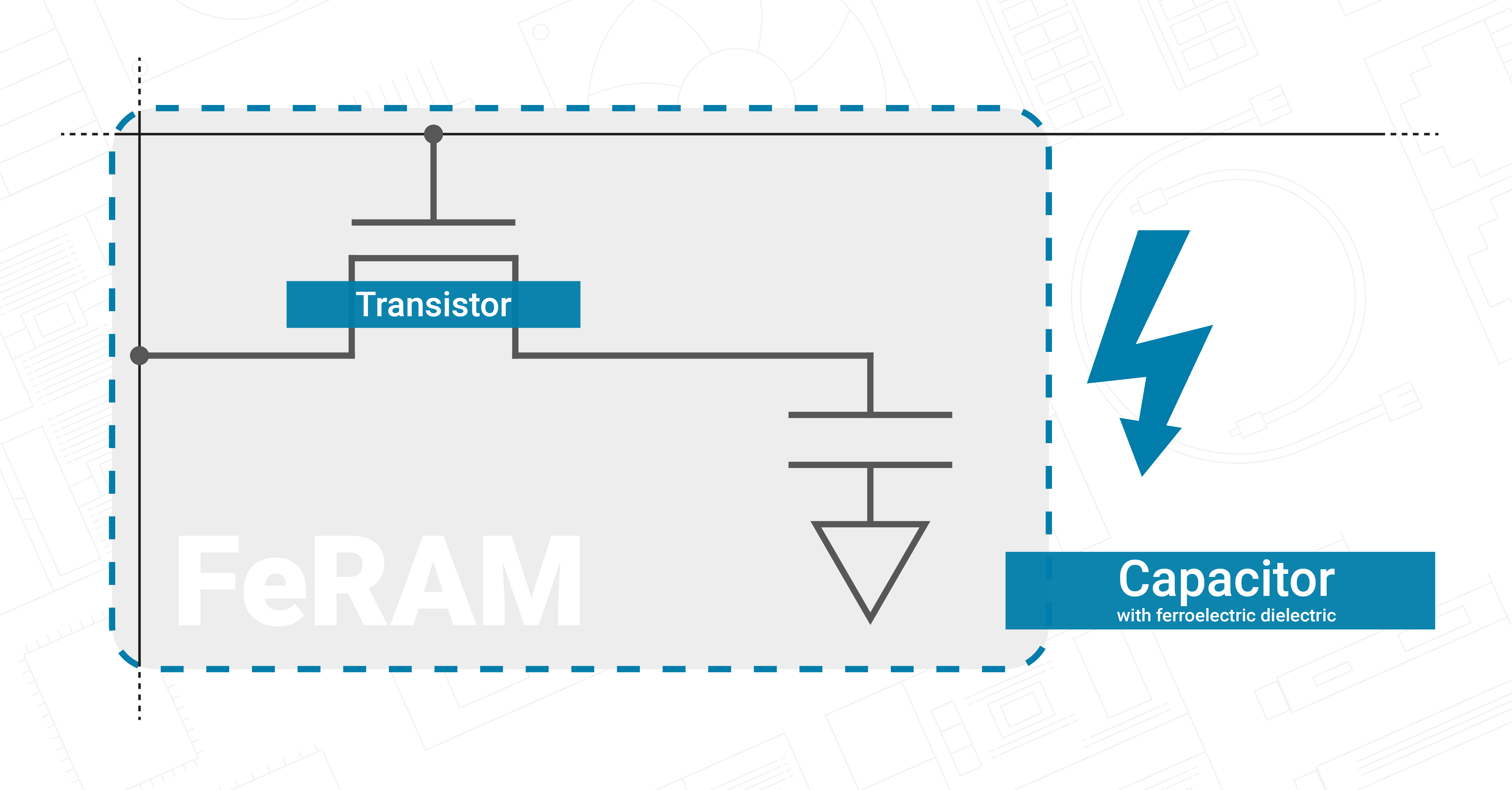 FeRAM (ferroelectric RAM) is a type of non-volatile RAM (random access memory). The FeRAM is characterized by a particularly high data retention, i.e.: even at 125°C, the data is retained for over 10 years if the power supply is interrupted.