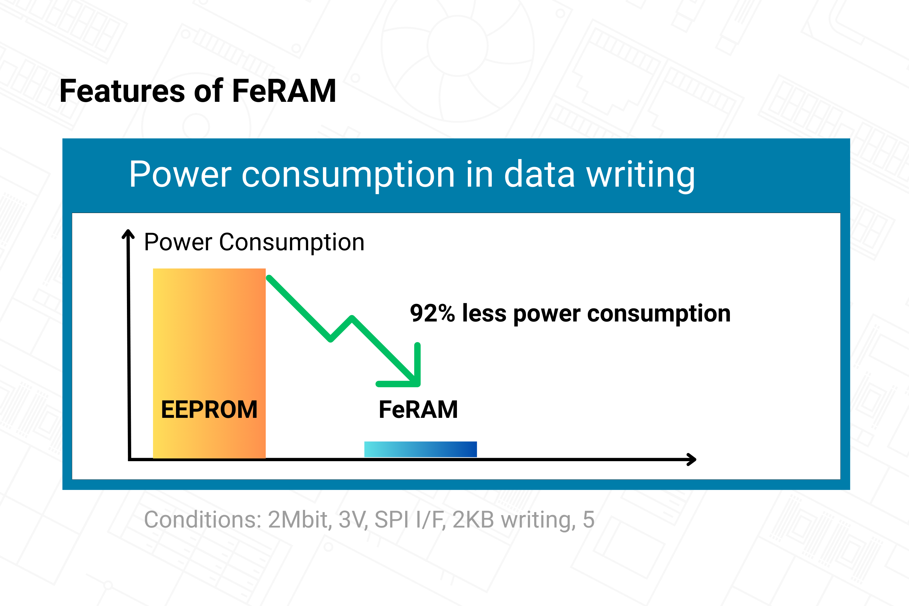 FeRAM is therefore useful wherever high write loads, energy efficiency, and data security are required – even if the capacity is lower than that of flash memory.