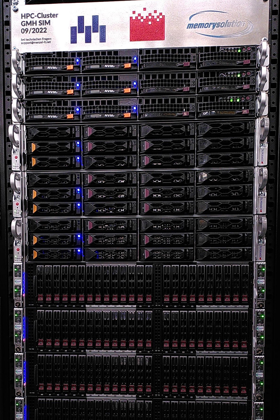 Der Cluster wurde schlüsselfertig inkl. Einbindung bestehender Server Hardware mit angepassten Netzwerkinterfaces sowie RockyLinux-OS, Proxmox-HA, diverser Cluster Management- und kundenbasierter Simulations-Software (u. a. star-ccm+, Abaqus, Thercast) installiert übergeben und wird über den gesamten Garantie-Zeitraum im Bereich der Hard- und Softwarefunktion komplett supportet.