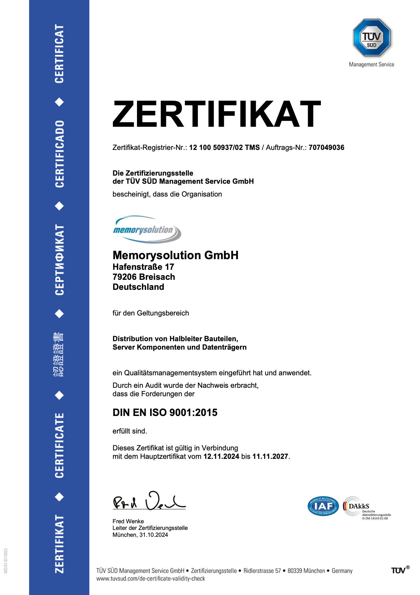 Im wirtschaftlichen Umfeld bezeichnet der Begriff Qualitätsmanagement alle Maßnahmen zur Verbesserung der Prozessqualität, der Arbeitsqualität und damit der Produkt- und Dienstleistungsqualität. Seit über 25 Jahren erfolgreicher Distribution von Client-, Server- und Industrie-Hardware sowie schlüsselfertigen Server- und IT-Lösungen lautet der unternehmerische Grundsatz der Memorysolution GmbH: partnerschaftlich, im Sinne unserer Kunden zu handeln. Diese Maxime prägt das Qualitätsmanagement der Memorysolution GmbH.